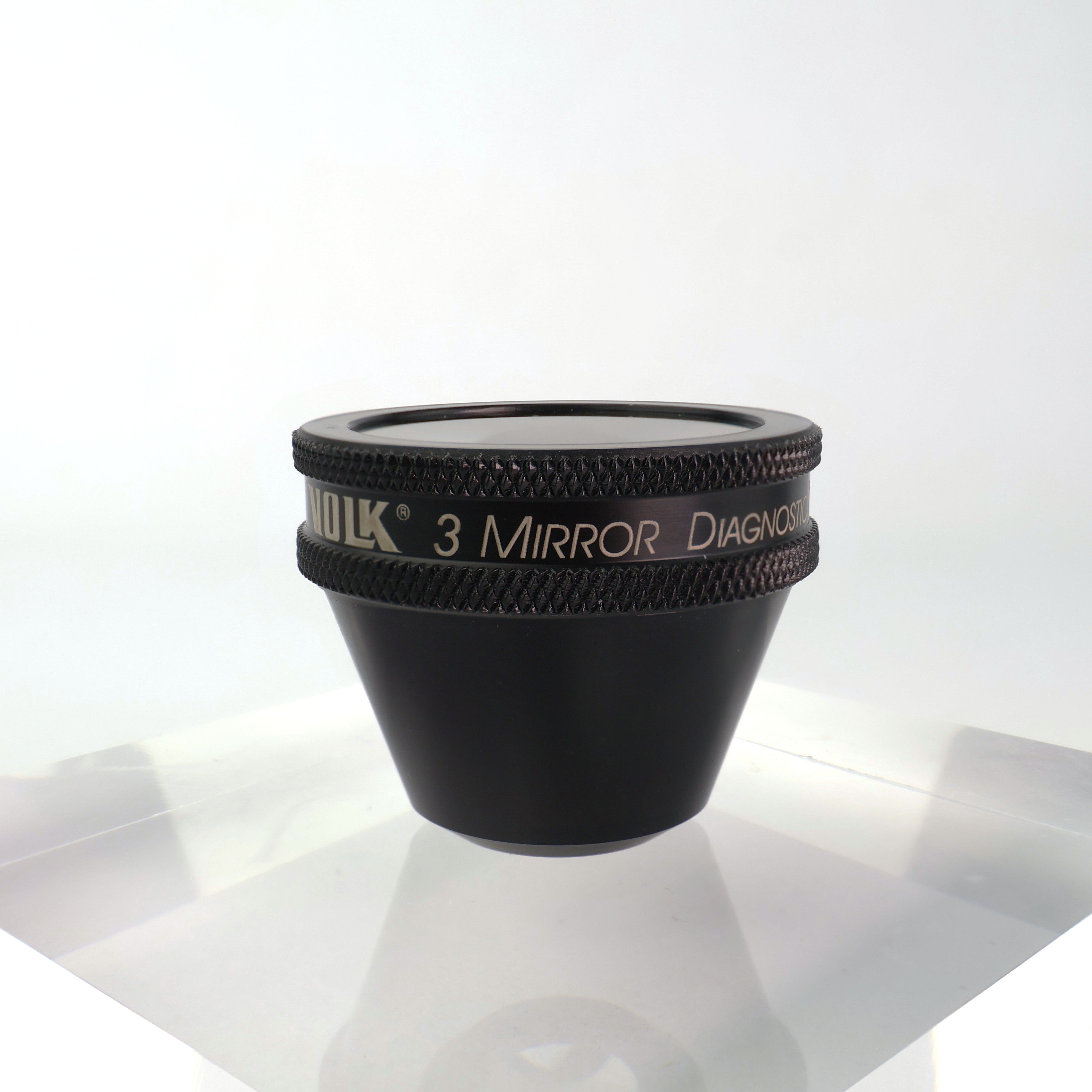 Get the same views as our G-3 Gonio lenses, but with the added benefit of a light weight, acrylic design. The 3-Mirror Lens comes uncoated for diagnostic exams and coated for use with lasers, so you have more options to suit your practice. Our advanced no fluid (ANF+) flange option only needs a coupling fluid during laser treatments. The 3-Mirror Lens is truly flexible and convenient!